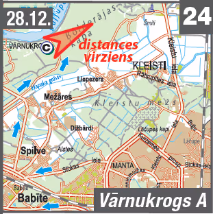 Marķējums no Babītes (pagrieziens uz Vārnukrogu). Apvidus: detalizēts kāpu reljefs dažādu audžu priežu mežā. Magnēta bērnu skoliņa 13:00.