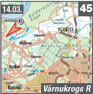 Marķējums no Babītes, pagrieziens uz Vārnukrogu. Apvidus: detalizēts kāpu reljefs dažādu audžu priežu mežā. Magnēta bērnu skoliņa 13:00.
