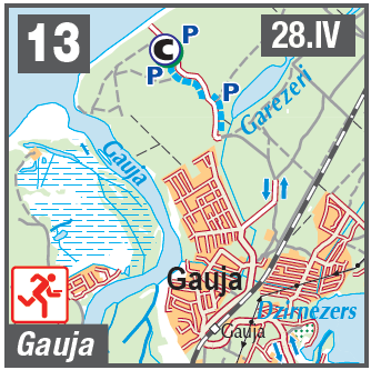 Marķējums no Tallinas šosejas (pagrieziens uz Gauju). Apvidus - detalizēts piejūras kāpu reljefs. Uzmanību, atradīsimies dabas parkā! Autotransportu novietot tikai uz ceļa, mežā iebraukt aizliegts. Magnēta bērnu skoliņa 18:30.