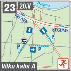 Marķējums no Ķekavas - Ķeguma ceļa. Apvidus: priežu mežs ar jaunaudzēm un nelielu kāpu reljefu. Magnēta bērnu skoliņa 18:30.