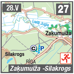 Marķējums no Zaķumuižas ceļa. Apvidus: pārsvarā parkveida priežu mežs ar jaunaudzēm, kāpu reljefs un daudz meža ceļu un taku. Skrienamība no labas līdz ļoti labai. Magnēta bērnu skoliņa 18:30.